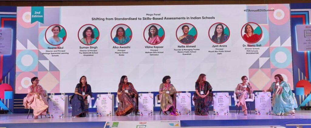 The Founder and Managing Trustee Mrs Nellie Ahmed was invited to participate in ‘The Economic Times Annual Education Summit’ held on June 19 and 20, 2025 in New Delhi. She was one of the panelists in the ‘Mega Panel: Shifting from Standardised to Skills-Based Assessments in Indian Schools.’ The Coffee Table Book published on the occasion features her journey as an educator and a visionary leader.