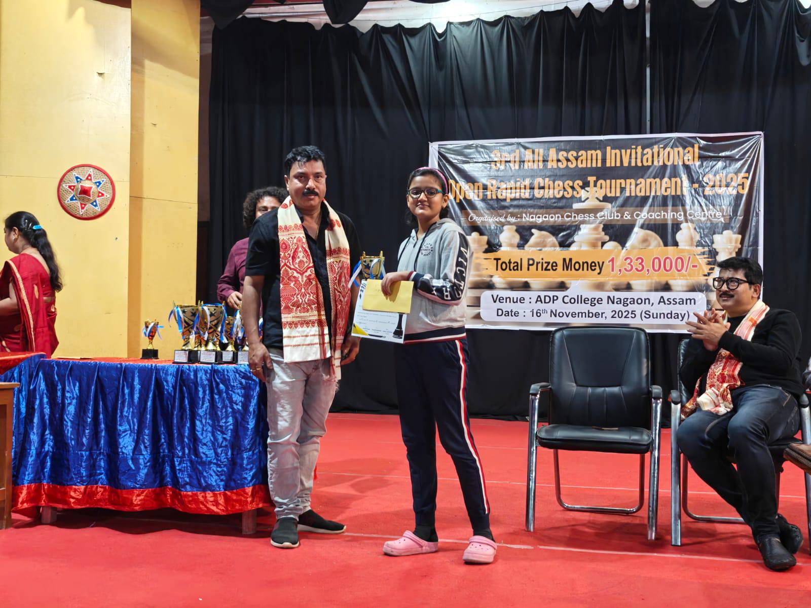 Ameya Gupta of Class 6 has secured the first position in the Under 11 Girls Category at the 3rd All Assam Invitational Open Rapid Chess Tournament 2025, held at Nagaon on November 16. She received a certificate, trophy and a cash prize of Rs1500.
