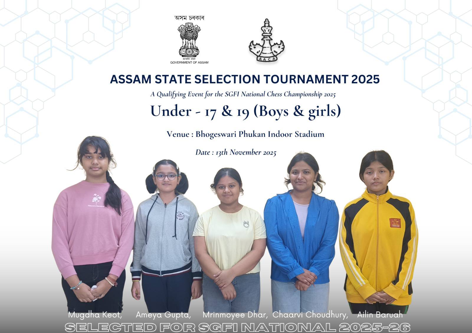 She has also been selected to represent Assam in the U 17 category at the SGFI Nationals to be held in Agartala, later this month.