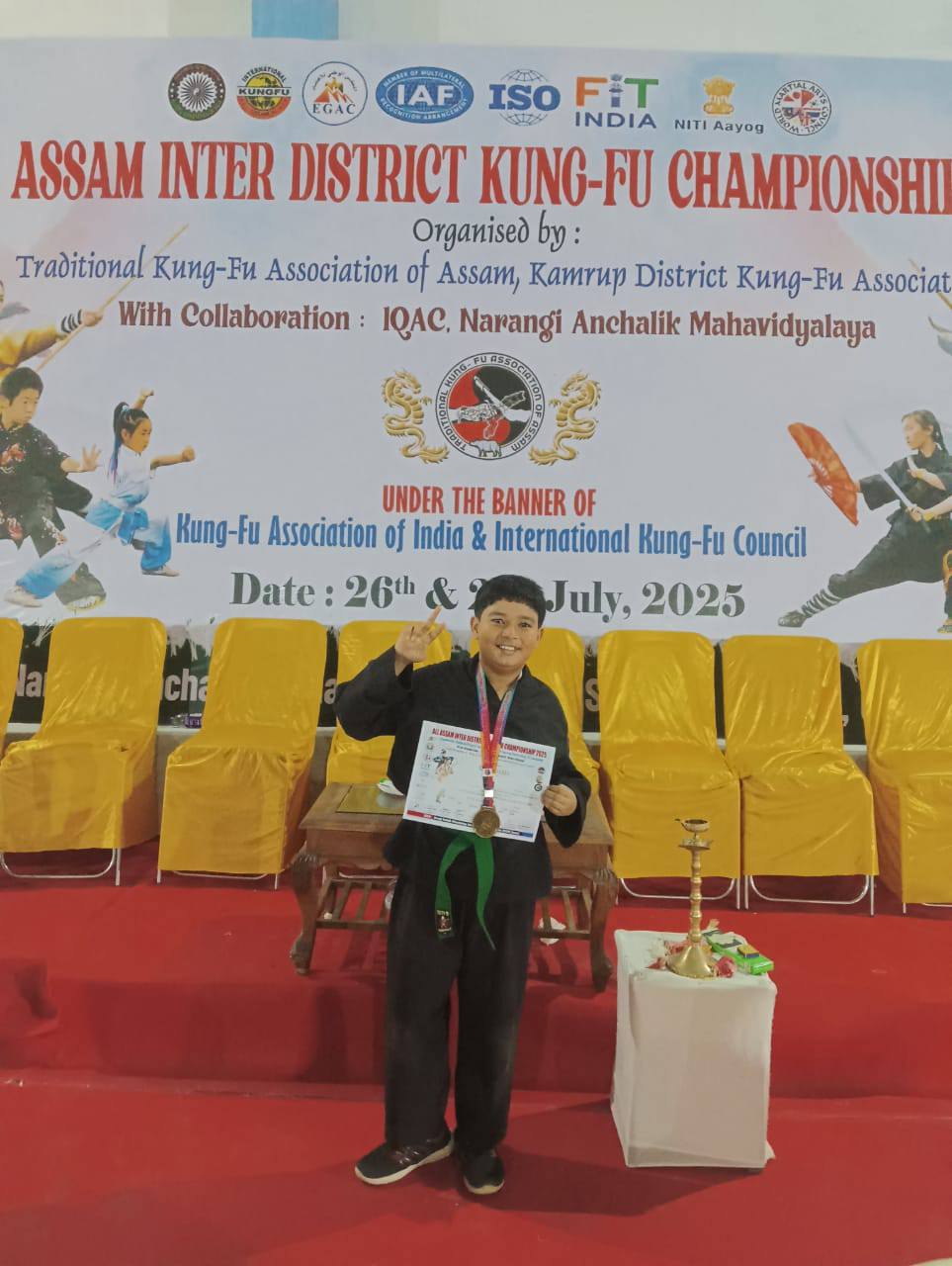 Prethibi Purkayastha of Class 4, won a Gold medal in All Assam Inter District Kung-Fu Championship. IQAC – Narangi Anchalik Mahavidyalaya on July 26, 2025.