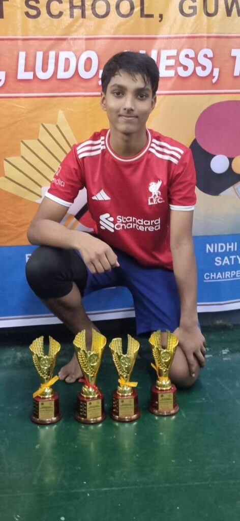 Ekaksh Bhattacharya of Class VIII delivered an exceptional performance at the Inter-School Badminton Championship held at South Point School, organised by the Lions Club on February 1, 2026. He secured four trophies—