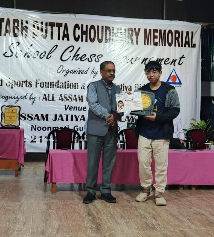 The team of Maria’s Public School received the Best School Award at Raktabh Dutta Choudhury Memorial Inter School Chess Tournament 2026 held from March 21 to 24, 2026 organized by Mind Sports Foundation at Assam Jatiya Bidyalaya, Noonmati, Guwahati. Among the prize winners, Tanishq Thakuria of Class 9 got 1st position in Rapid Queen Category and 5th position in Classical Queen category while Shuvang Pran Kashyap, also from Class 9 got 4th position in Queen group. The Marian team comprised Tanishq Thakuria, Shuvang Pran Kashyap, Reyaan Nobis, Riddhiman Bhuyan, Pradyumna C Kataki, Aayansh Das, Anish Goswami, Adit Gupta, Tanmay Rajbongshi, Ameya Gupta, Priyanuj Das and Anshul Das.